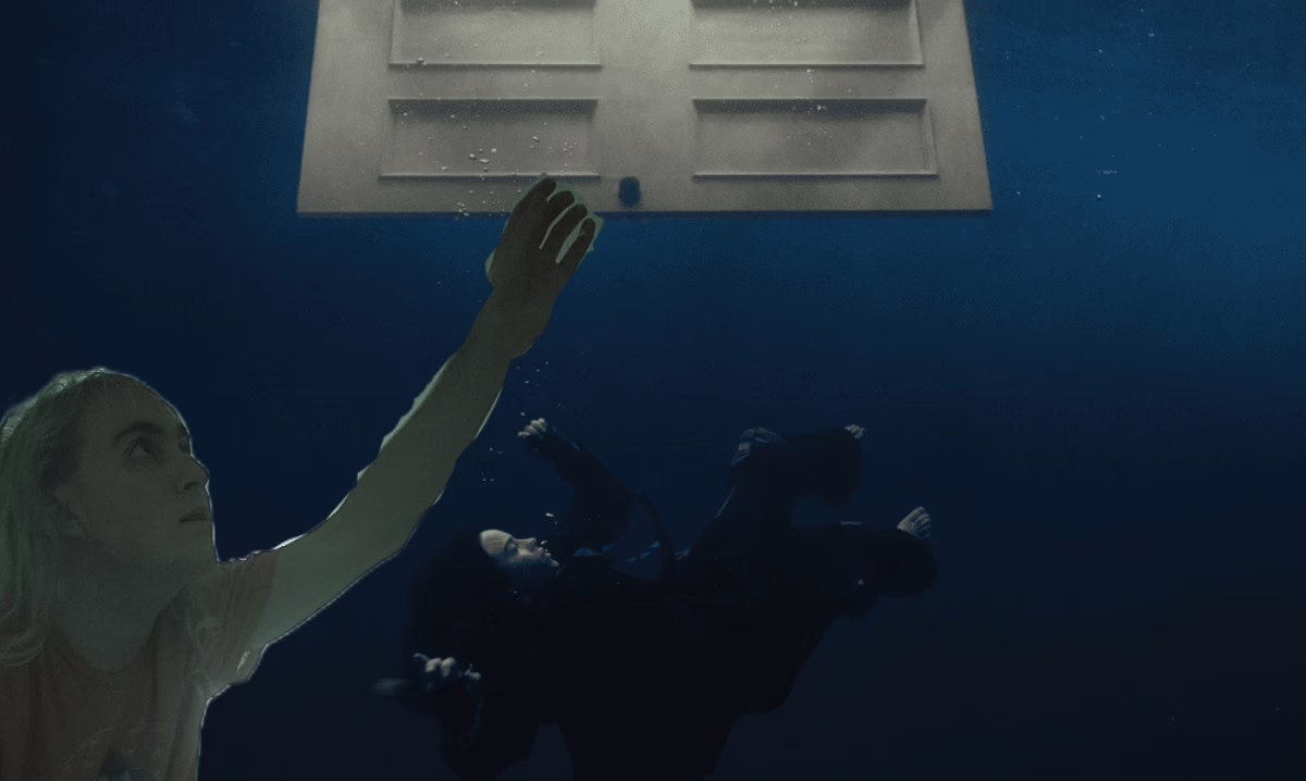 This can be seen on the track “Chihiro,” a fantastic piece of indietronica alt-pop that starts off so quiet it almost sounds muffled, like Billie is face down in her pillow, or as the cover shows, falling deep into the water. The syncopated drums and claps and twangy guitar slowly morph the track into this swell of electronic synth wallpapered with wailing background vocals from Billie, feeling like a despondent cry towards the future, before abruptly cutting off into “Birds Of A Feather,” like finally breaking out of that cynical trance.