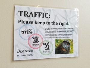 I am walking up the stairs in the SAM building, and I don’t have much time to get to the fourth floor. I stay on the right-hand side of the stairwell as I take stairs two at a time, cognizant to stay out of everyone’s way as I ascend. As I pass a landing, there is a helpful sign that says “Traffic: Please keep to the right.” A student ascending more slowly (it can be a lot of stairs) is stepping up the right-hand side, close to the wall, and I easily flow past them on their left, returning to the right-hand side of the stair case once I have passed. Another landing, another sign, “Keep to the Right.”