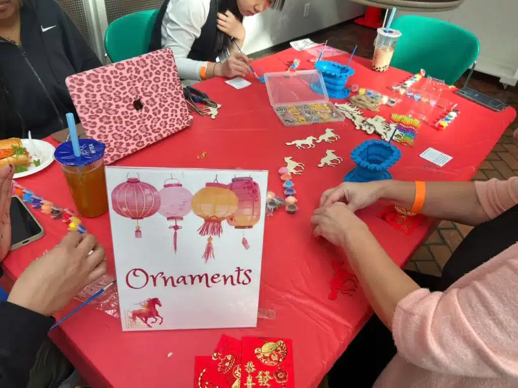 The M. Rosetta Hunter Art Gallery hosted a DIY craft table where participants painted and decorated wooden horse figures. The activity allowed students to express their creativity while connecting with the Lunar New Year theme, as the horse symbolizes strength, energy, and good fortune in the zodiac.