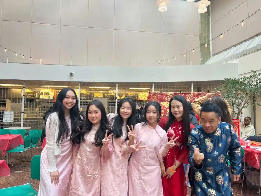 Beyond the activity tables, the event created a lively atmosphere where many students wore traditional attire and took photos with friends. Groups gathered throughout the room, chatting, laughing, and reconnecting while enjoying the celebration. The space became not only a place to participate in activities, but also a meaningful opportunity for cultural exchange, community bonding, and shared joy during the Lunar New Year.
