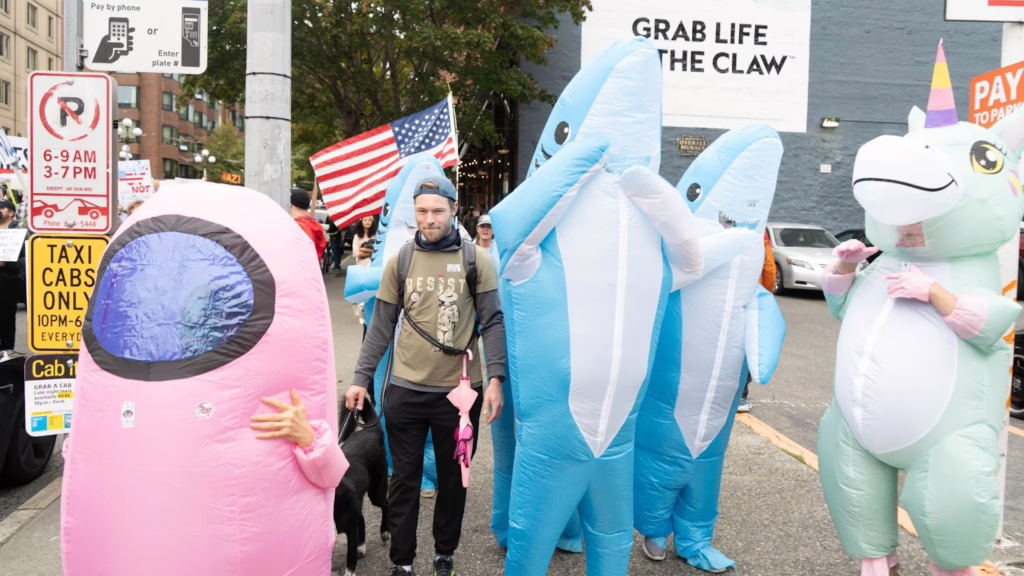 “We are peaceful protestors,” explained a group of inflatable sharks, “We don’t want ICE to see us as harmful. We’re just being peaceful and silly.”