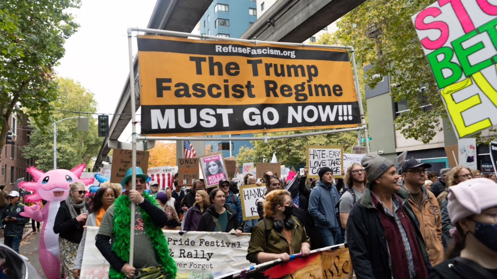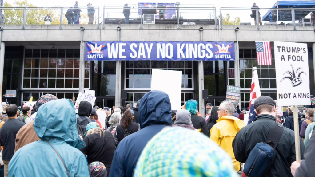 On Oct. 19, historic numbers of protesters gathered in small towns and city centers across the country for “No Kings” rallies, reaching an estimated seven million participants nationwide. In Seattle, about 70,000 people marched a mile through downtown, from the Seattle Center to Pike Place Market.