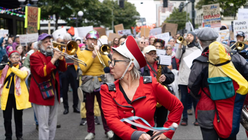 “In our local ‘No Kings’ Seattle coalition, we have been making an effort to reach out more widely to labor, and that has definitely grown our coalition over the past few months,” said Tyna Ek of Seattle Indivisible.