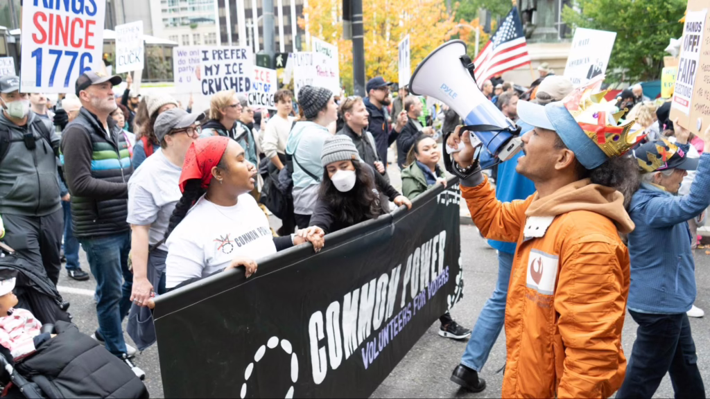 The movement represents a broad coalition opposing President Trump’s deployment of National Guard to U.S. cities, use of the Justice Department for political purposes, cuts to federal services, civil rights violations, discrimination against transgender people, gerrymandering, reproductive rights restrictions, and support for Israel’s war in Gaza— as well as his recent suggestion that he might seek a third term.