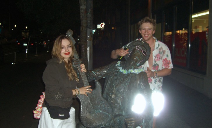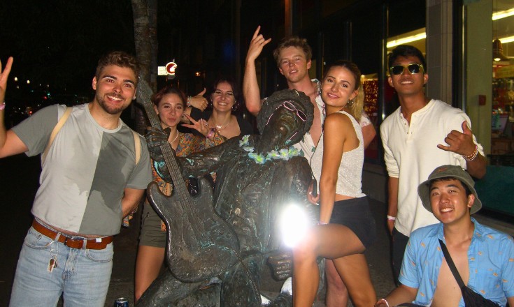 Sophia Bruscato | The Seattle Collegian Festival attendees gather around Jimi Hendrix’s statue on Broadway, 2023