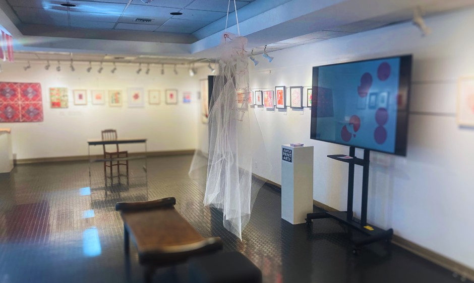 Meghan Trainor, the M. Rosetta Hunter Gallery’s curator, shares that the show marks another collaboration celebrating the gallery’s enduring relationship with Seattle Print Arts. “ I’m thrilled to continue working with this vibrant community of printmakers, which includes Amanda Knowles, the Curator of the North Seattle College Art Gallery, Christina Reed, whose 2022 exhibition here at the M. Rosetta Hunter Galley, ‘Reckoning,’ exposed the roots of redlining in Seattle, and Kelda Mortensen and Kim Van Someren, both represented by Seattle’s J. Rinehart Gallery,” says Trainor.
