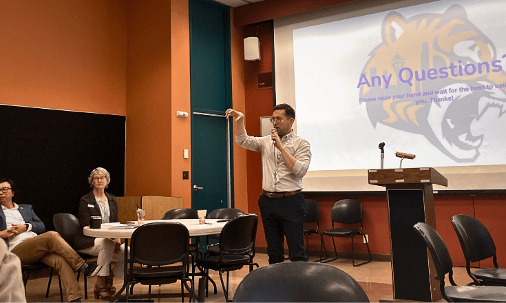 “You should not have to include [those grades] in your GPA, and the other piece is that there are scholarships that international students may not be eligible for, but there are other [scholarships] that you may be eligible for,” answered President Lane, who then announced the end of the event, offering tiramisu and boba tea for the audience as they prepared to leave.