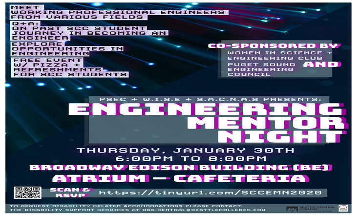 On January 31, from 6:00 to 8:00 pm, Seattle Central will be hosting Engineering Mentor Night in the 1st floor atrium of the Science and Math (SAM) building. This event, which is co-sponsored by Seattle…