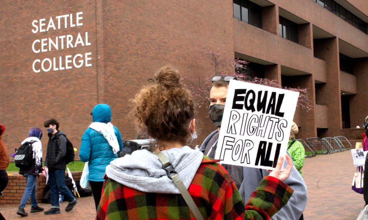 The square outside Seattle Central College was busy Tuesday afternoon with abortion-rights activists rallying in response to recent fears of the U.S. Supreme Court overturning Roe v. Wade and with it — the constitutional right…