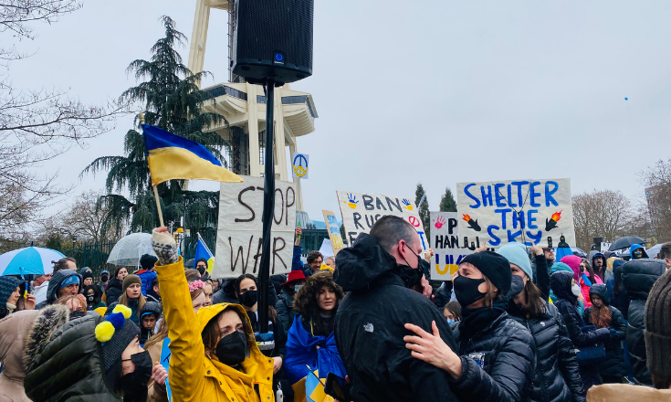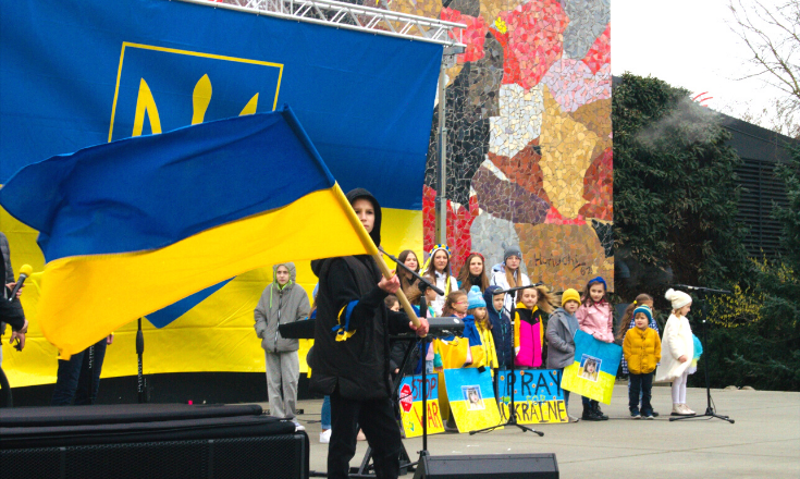 While the Ukrainian army fights against Russian aggression, residents of Washington state gathered Thursday afternoon at the University of Washington’s Red Square in protest of Russia’s ongoing invasion and in solidarity with Ukraine.